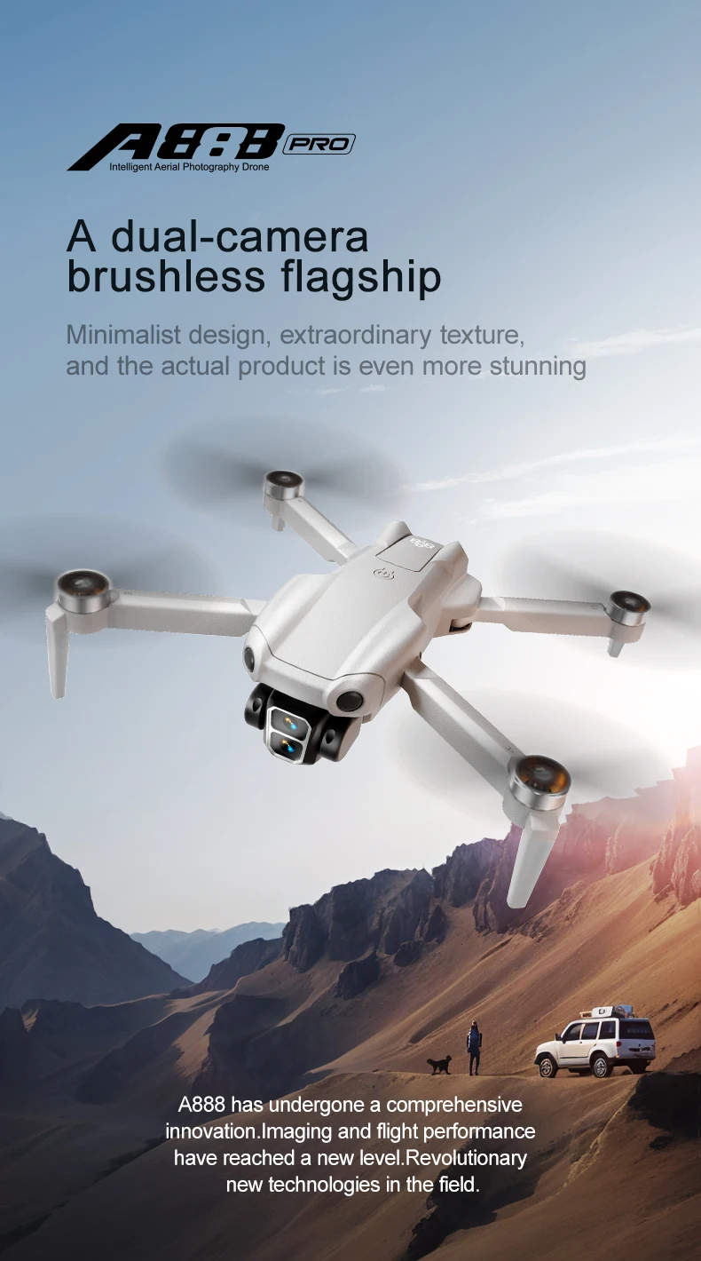 New A888 PRO Aerial Photography Drone Brushless Motor | Optical Flow Positioning | 360° Adjustable Camera | Remote Control