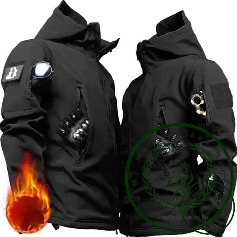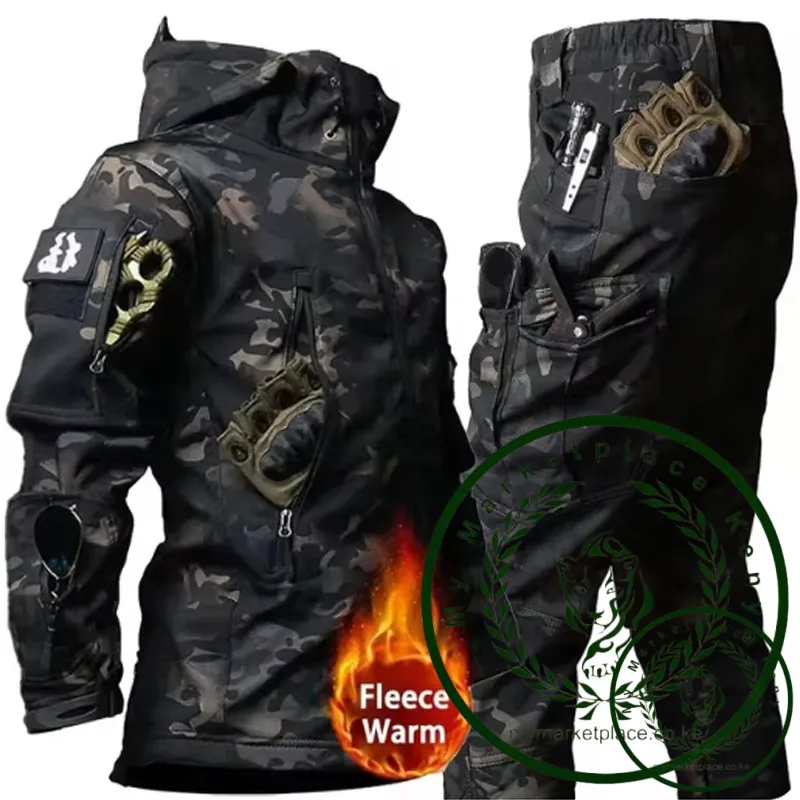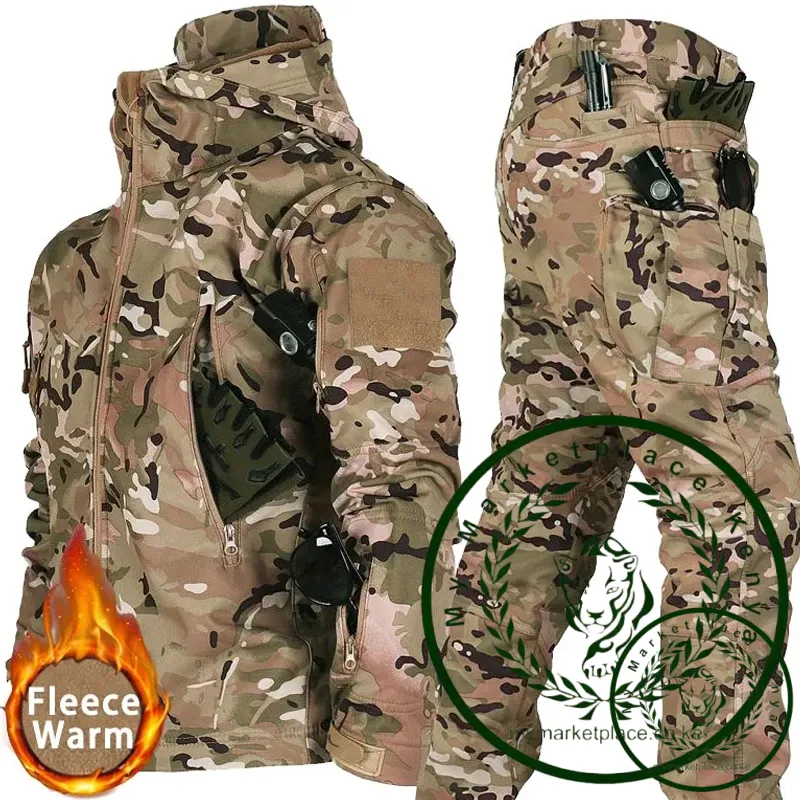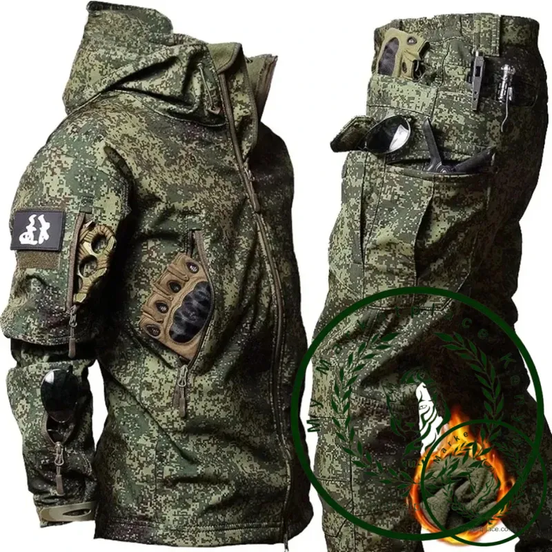Winter Clothes Sets Sharkskin Soft Shell Tactical Hooded Jacket Straight Cargo Pants Suits Waterproof Militarmy Combat Uniform